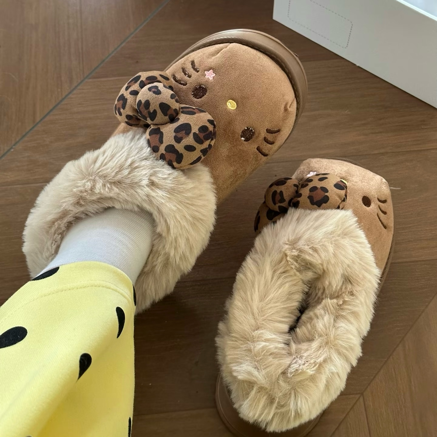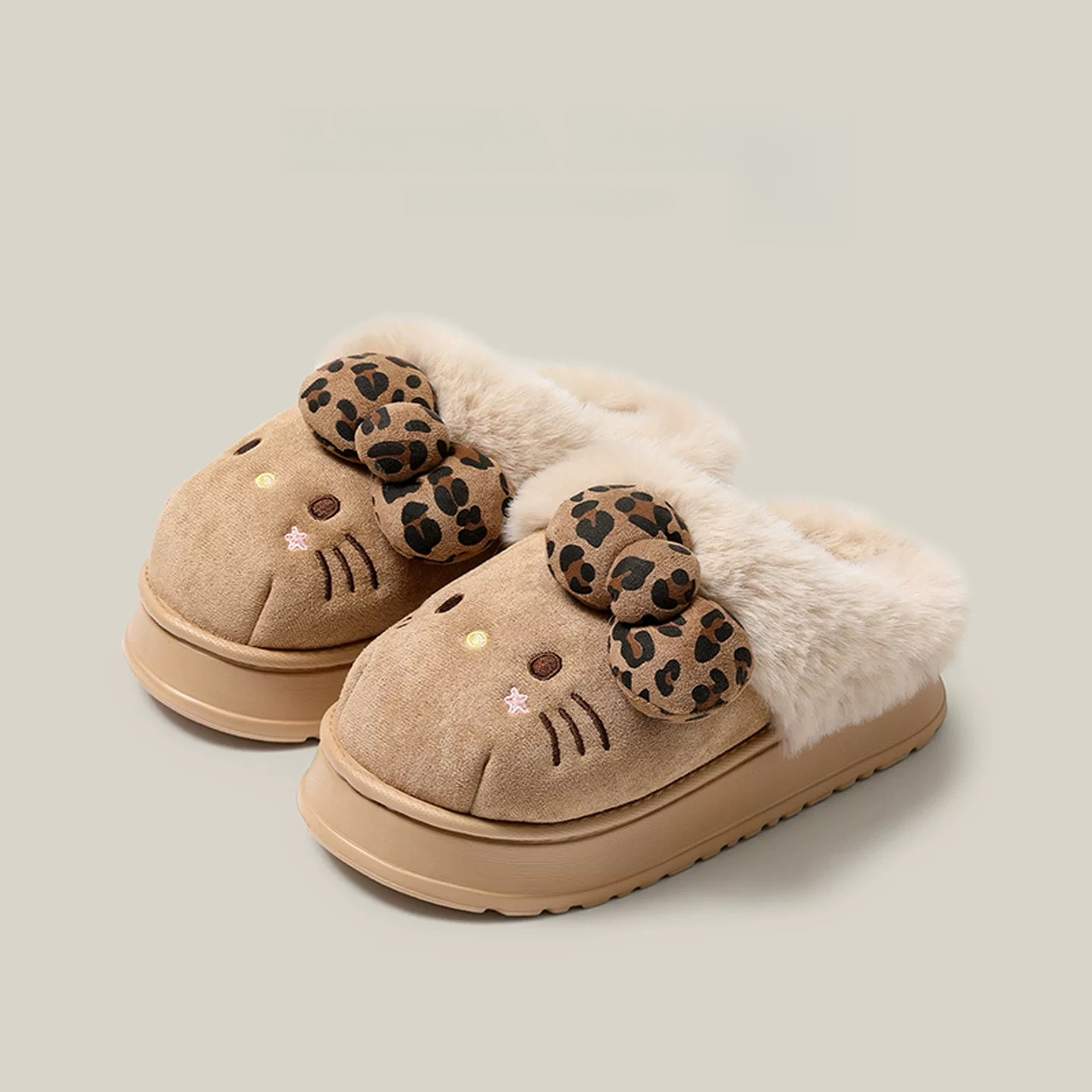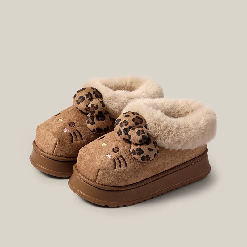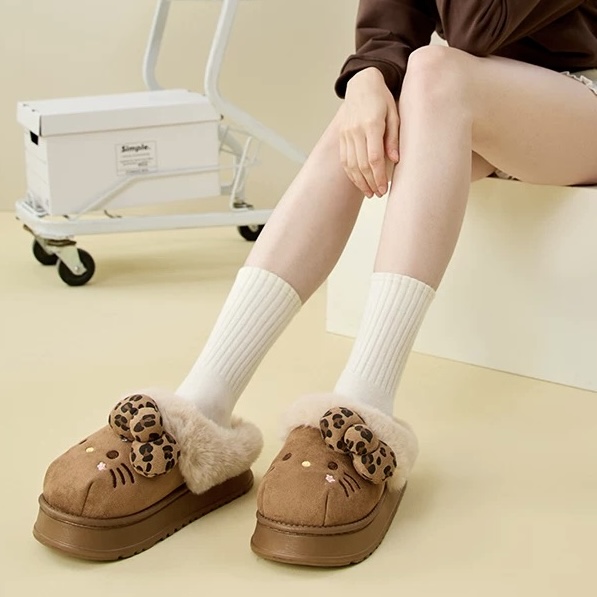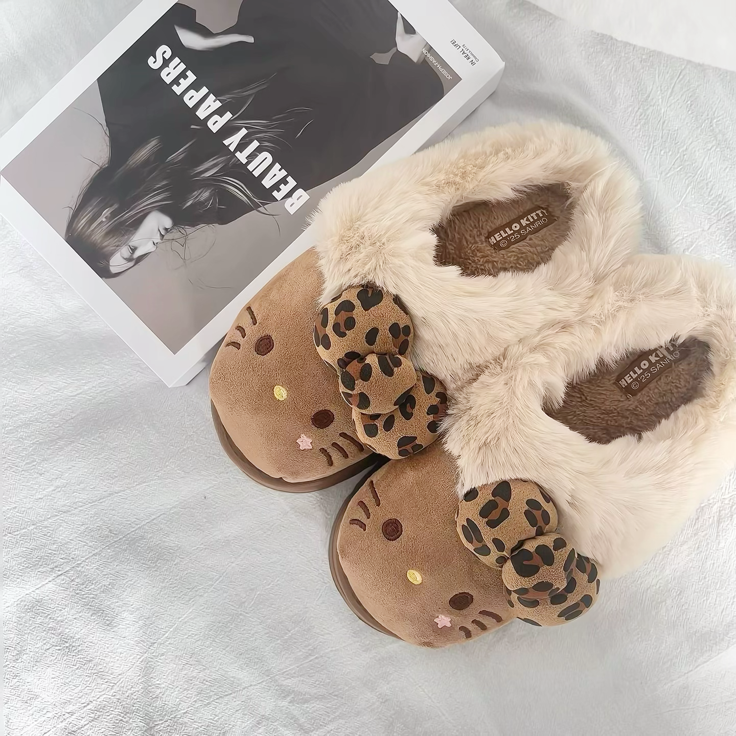 • Hellokitty Fuzzy Brown Slippers Fluffy Fall Winter House Shoes Indoor and Outdoor