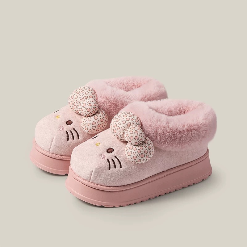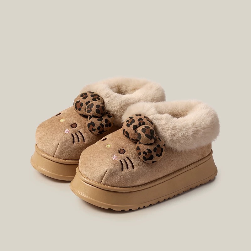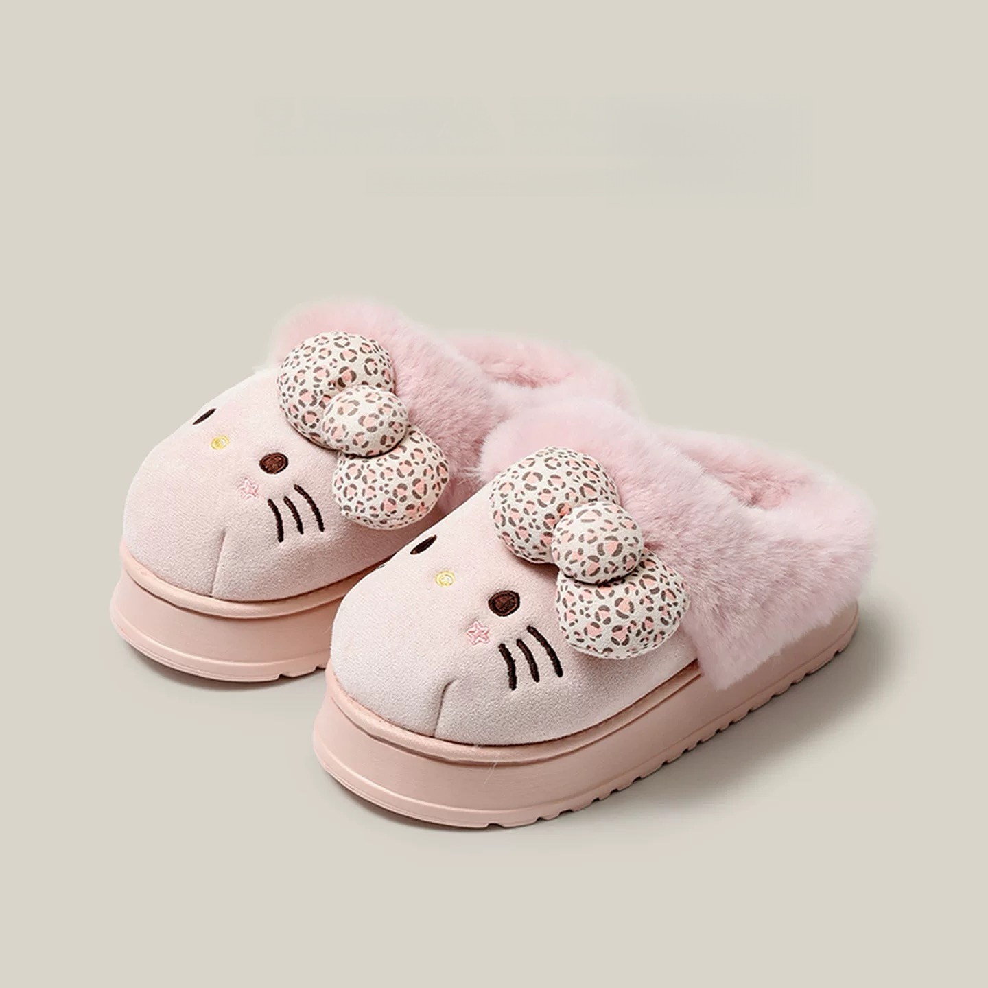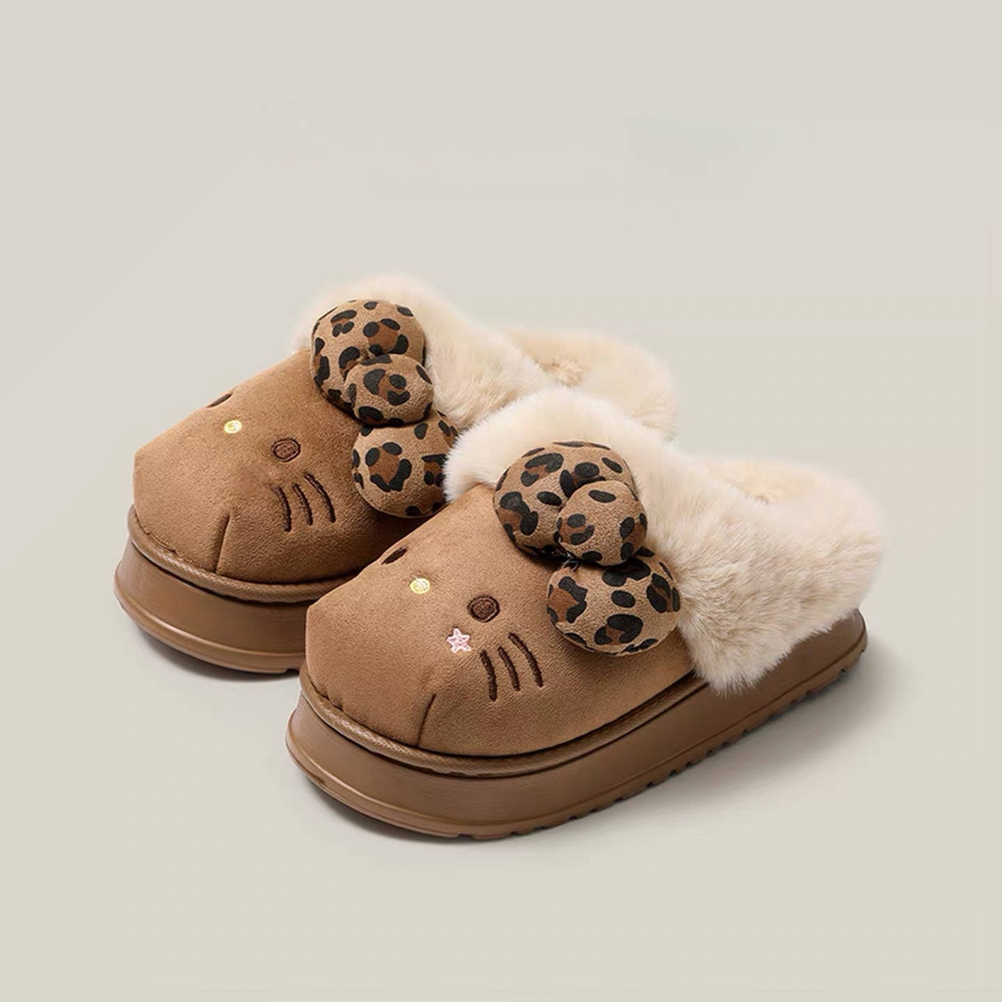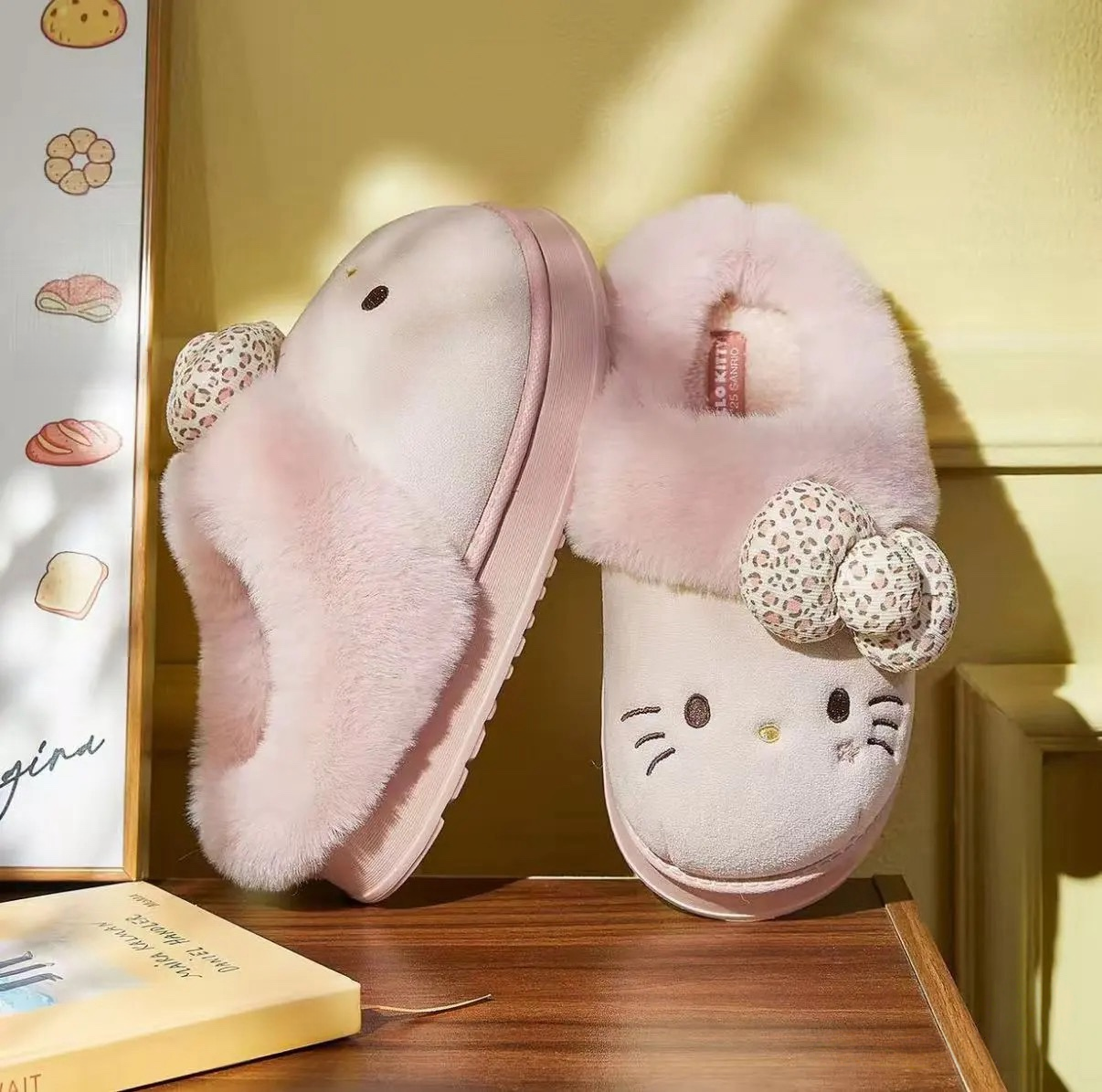 • Hellokitty Fuzzy Brown Slippers Fluffy Fall Winter House Shoes Indoor and Outdoor