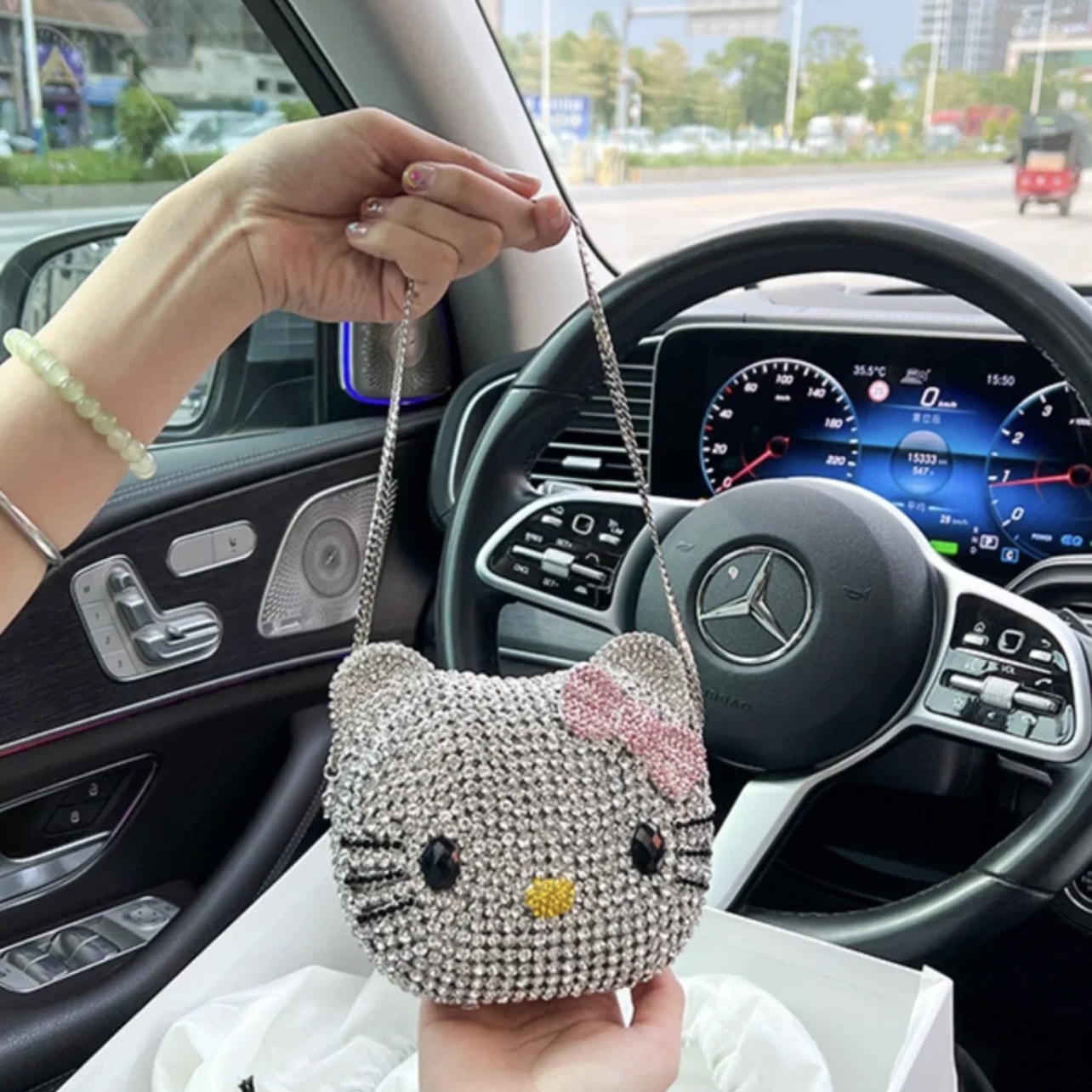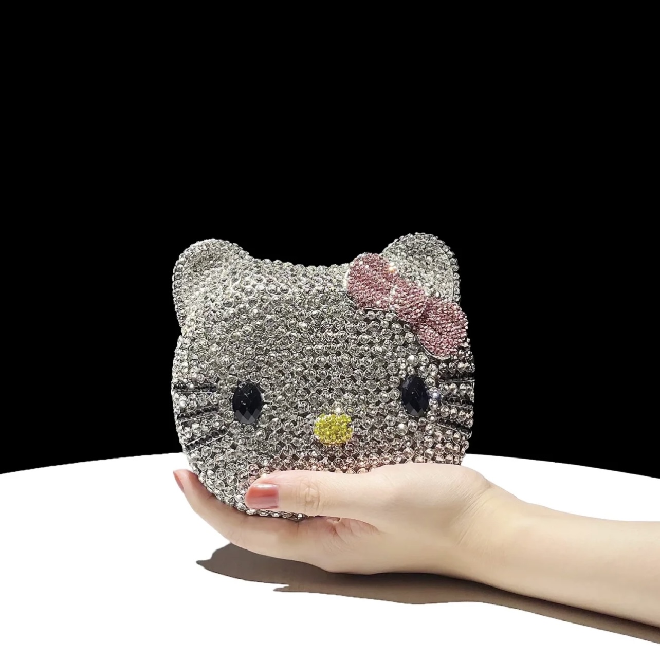 • Hellokitty Handmade Rhinestone Purse Bag Top Handle Clutch Crossbody Handbag Lipstick Bag Ladies Accessories Gift