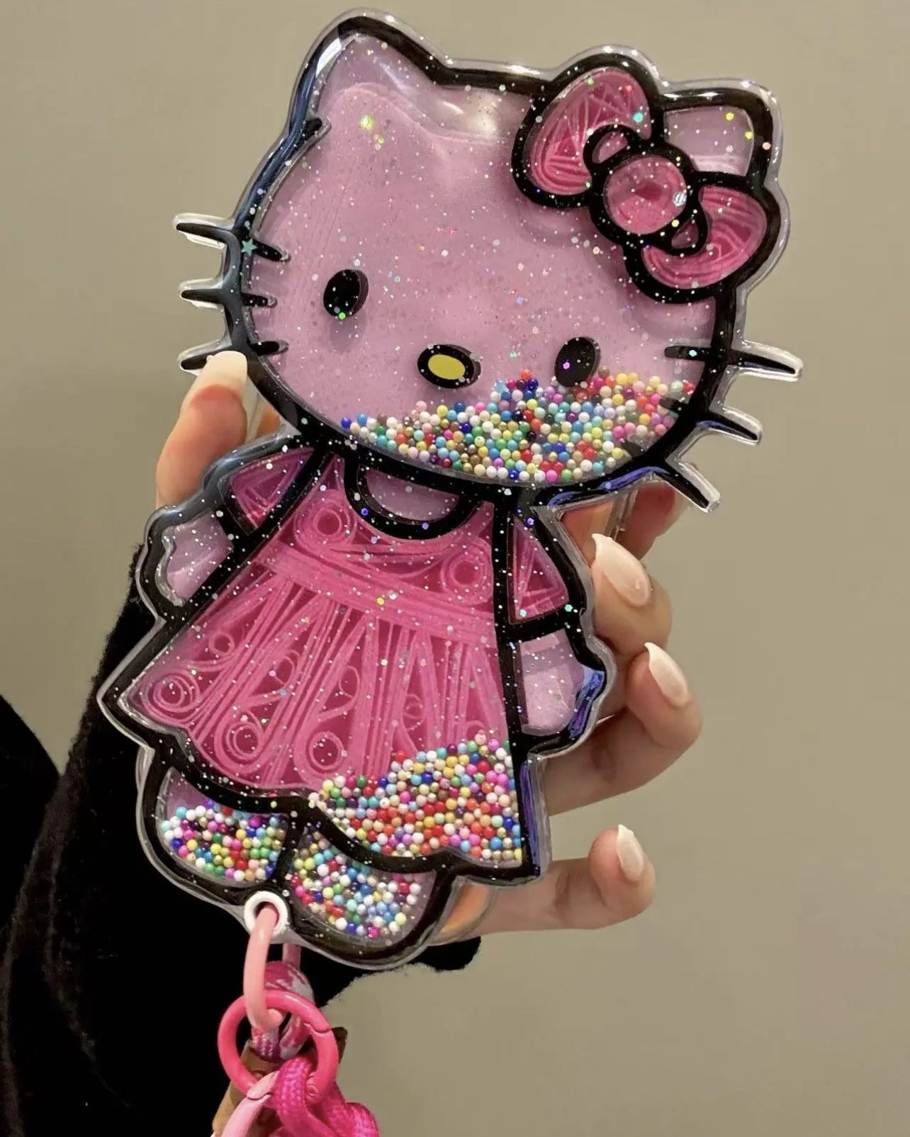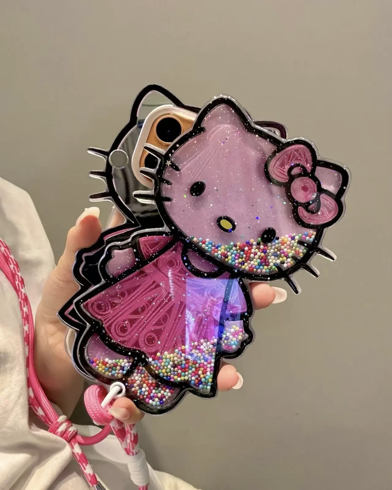 • Cute Hello Kitty Pink Skirt Push-Pull Mirror Phone Case, Compatible with iPhone 17 Pro Max