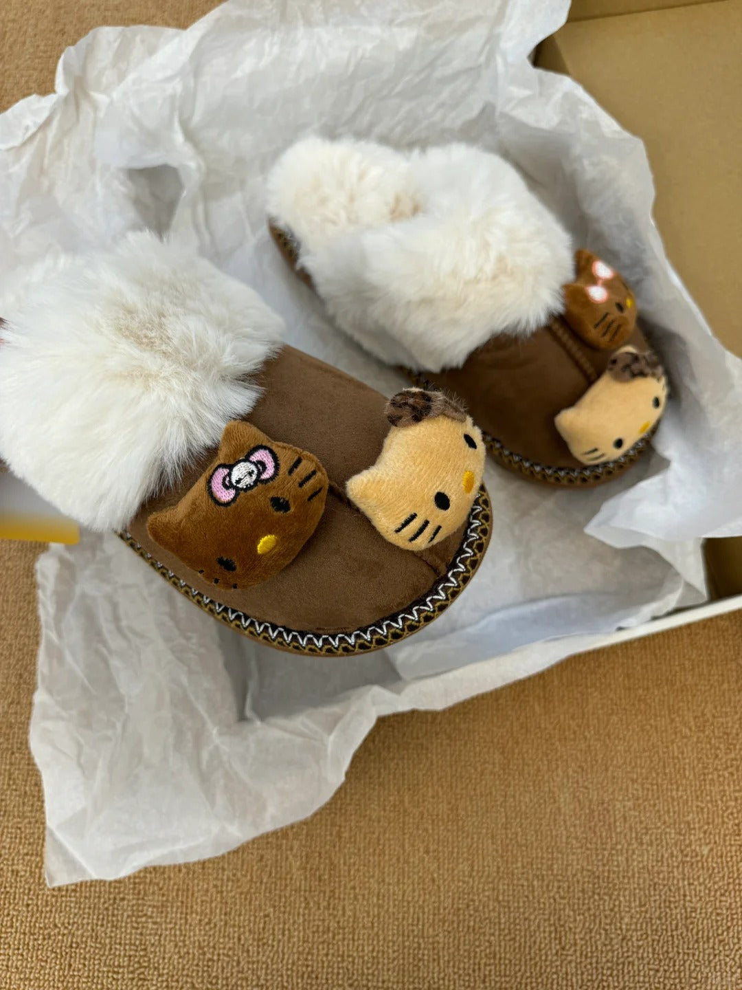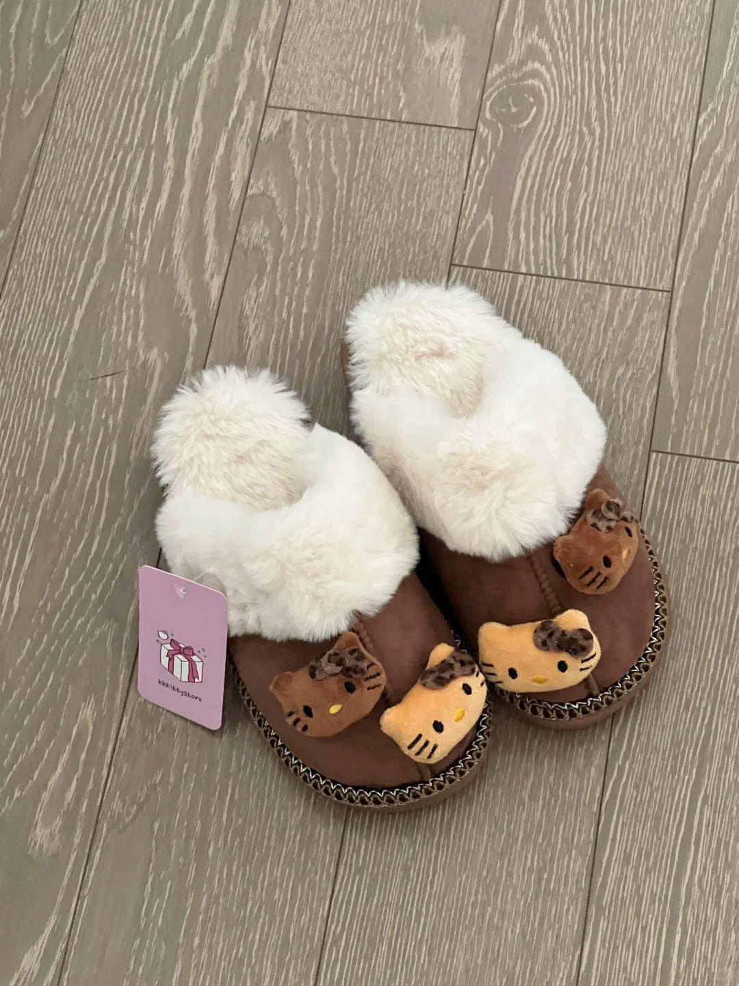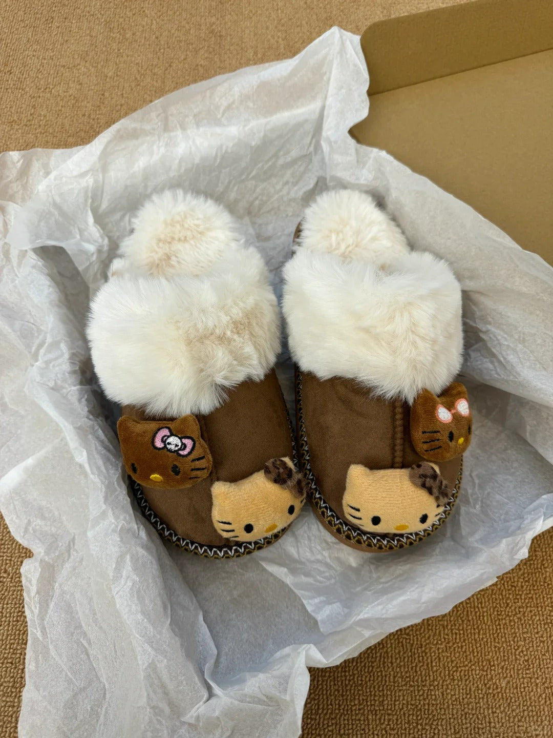 • Hello Kitty Fuzzy Brown Slippers Winter House Shoes