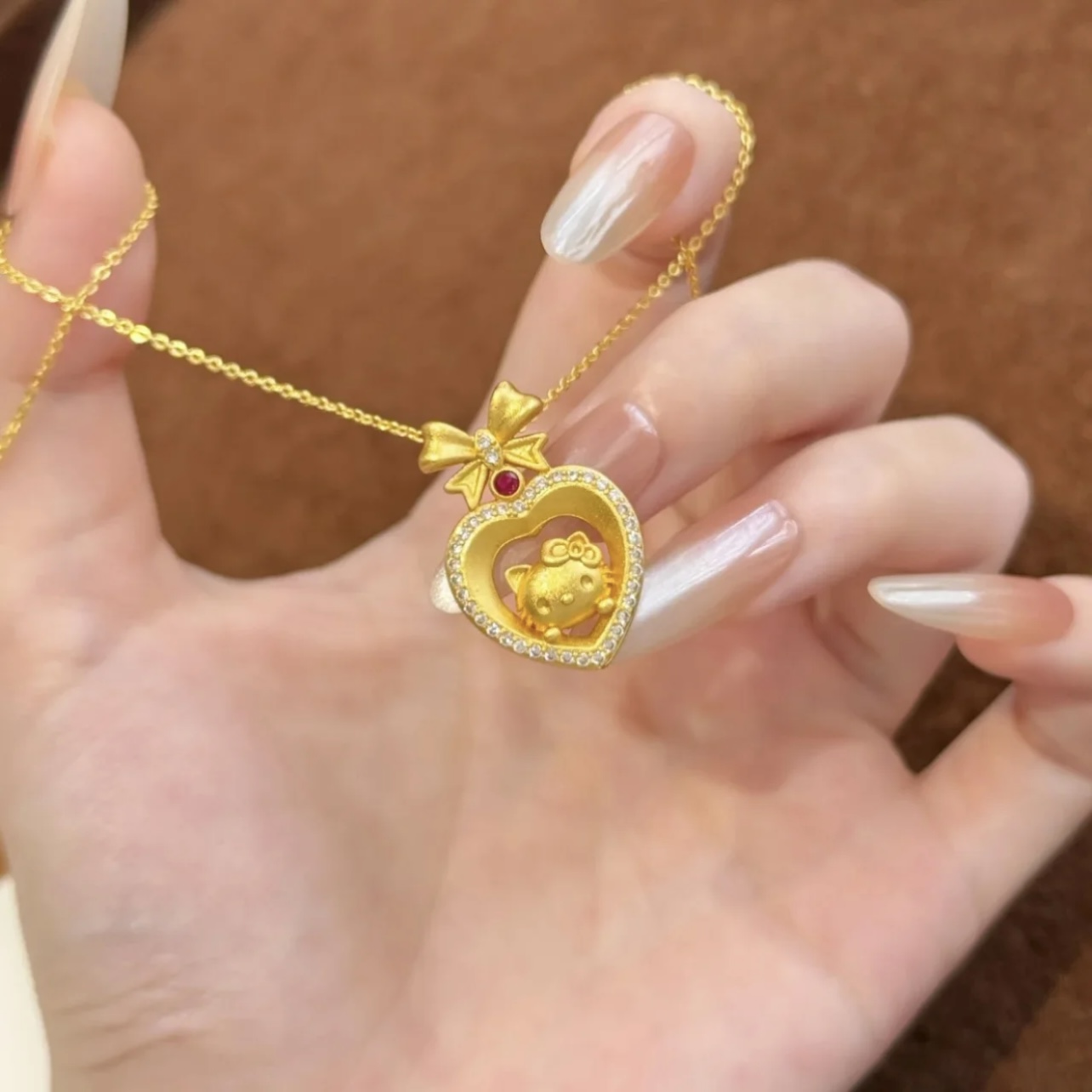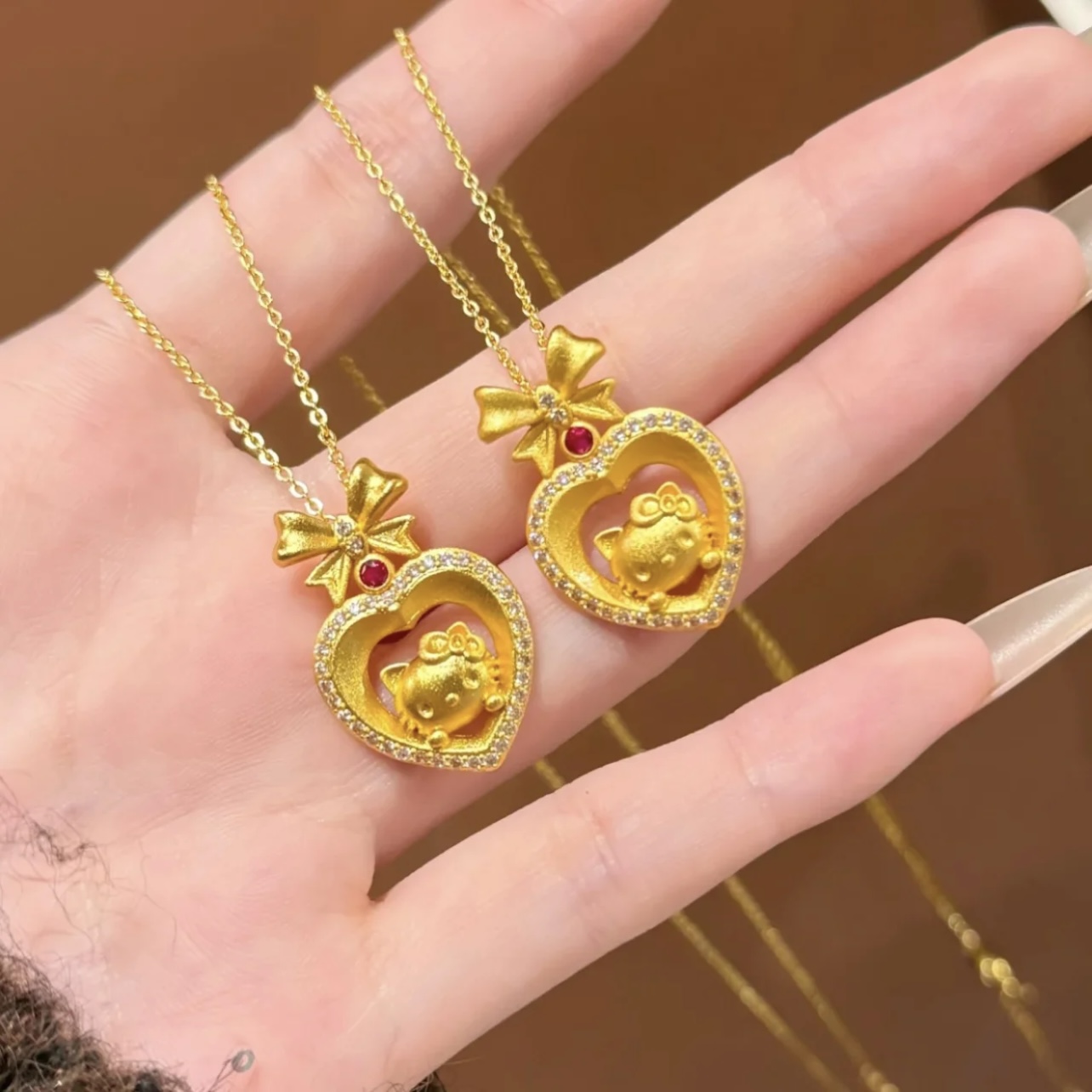 Hello Kitty Gold Pendant, Cute Cartoon Clavicle Hello Kitty Necklace
