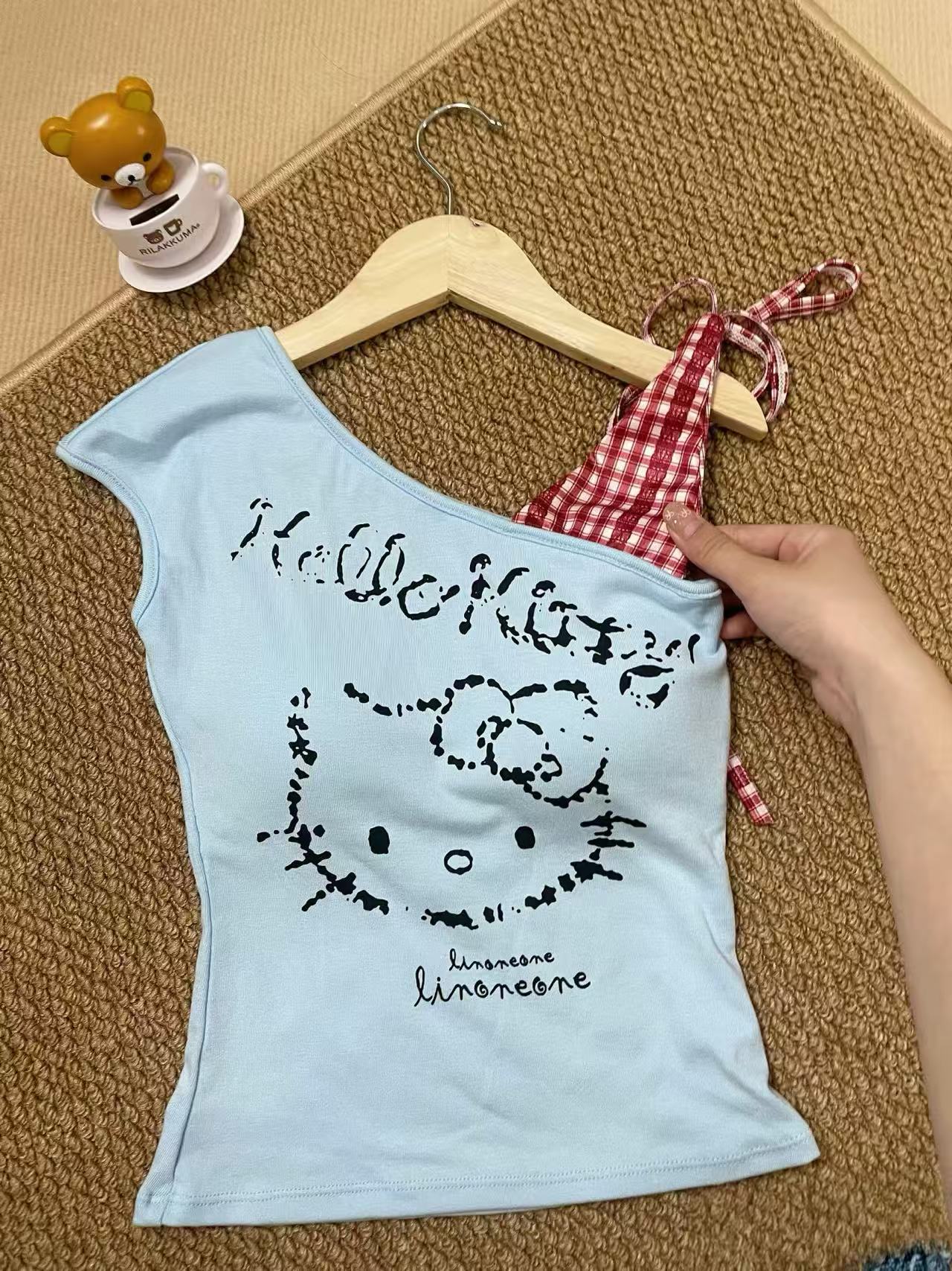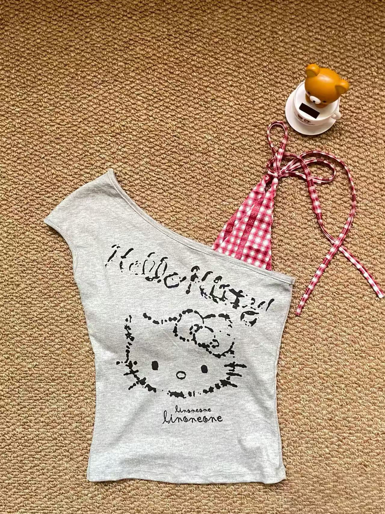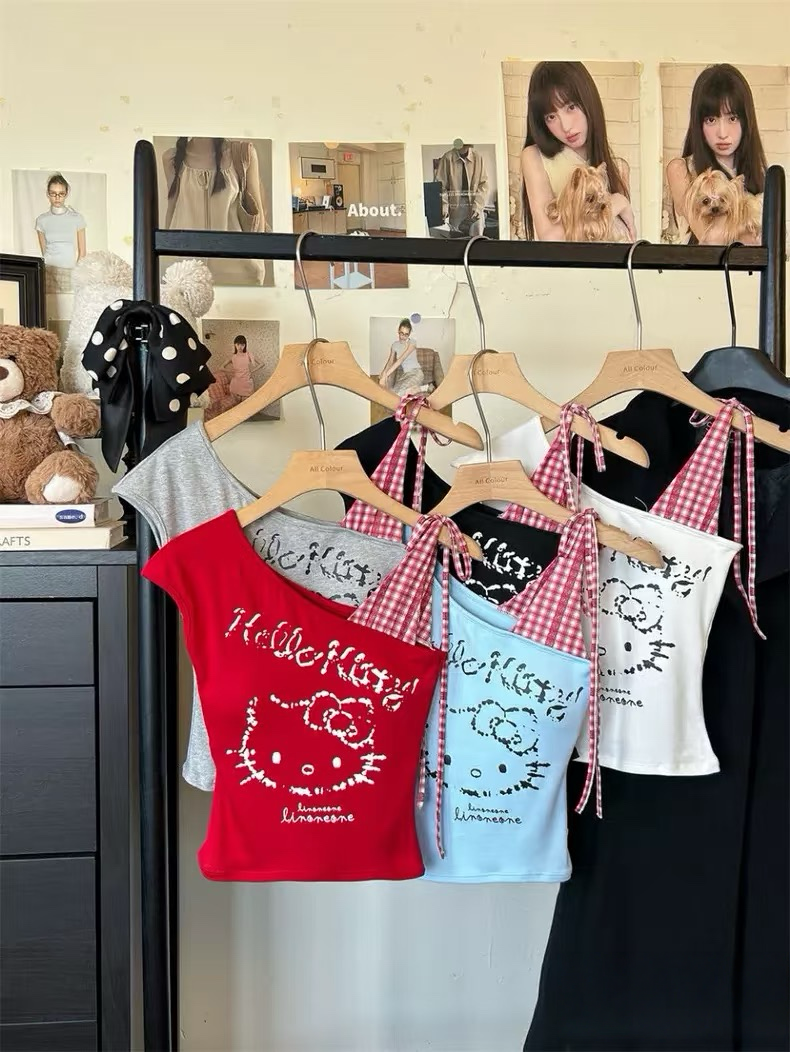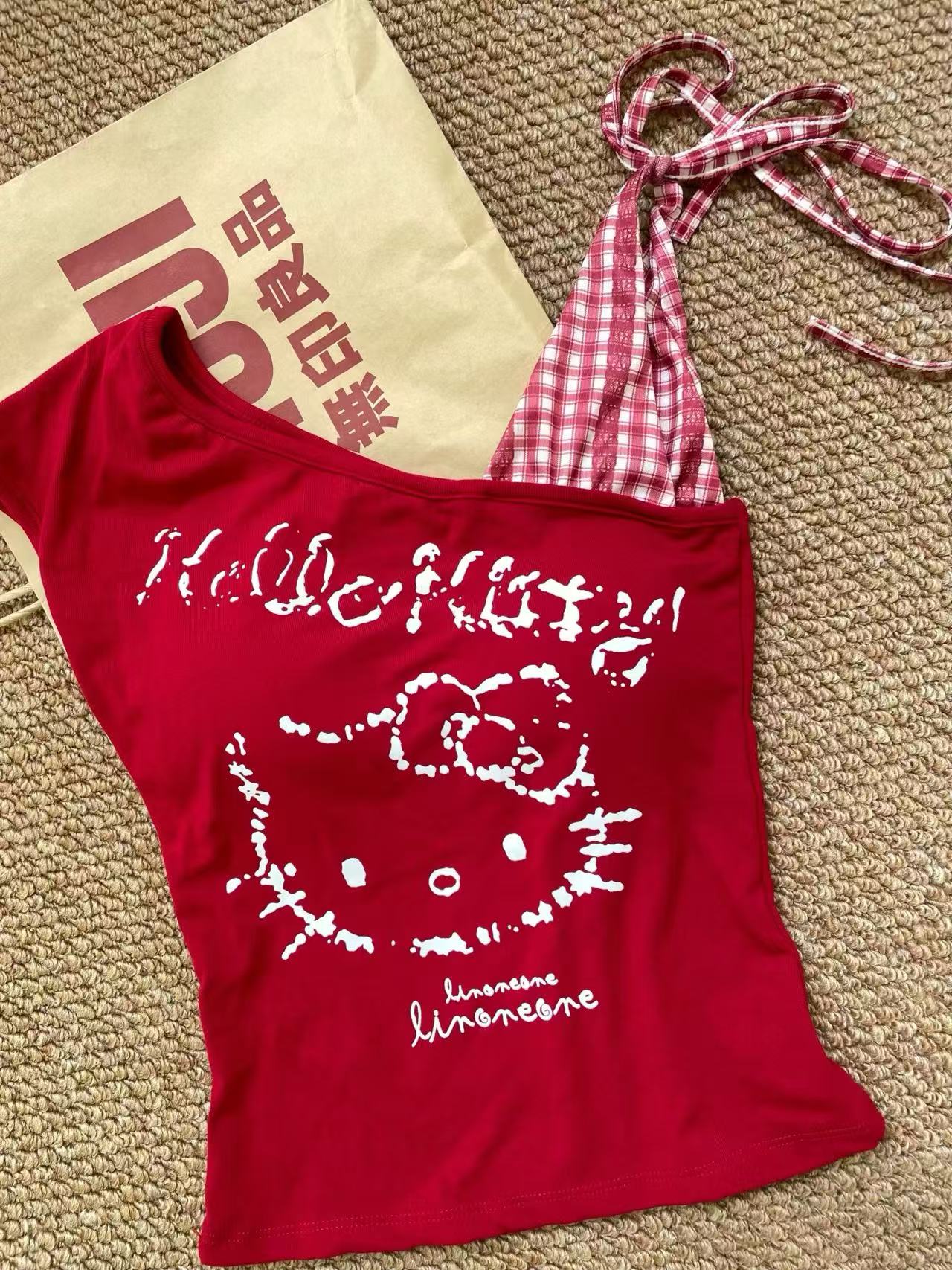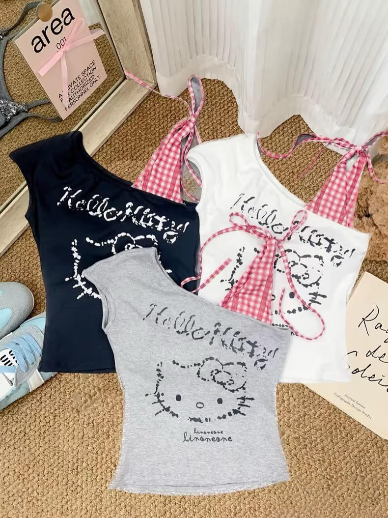 • Hello kitty One Shoulder Tank Tops Asymmetrical Sleeveless Shirts