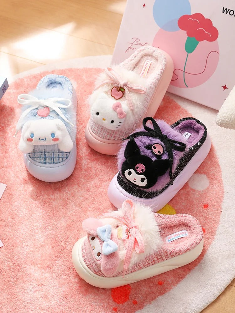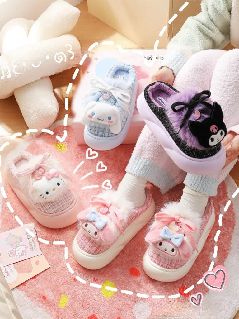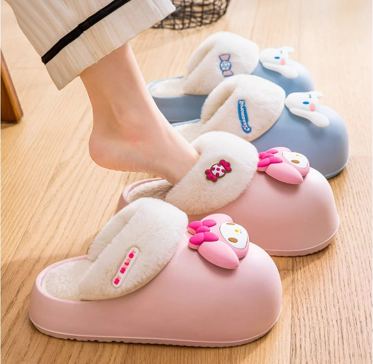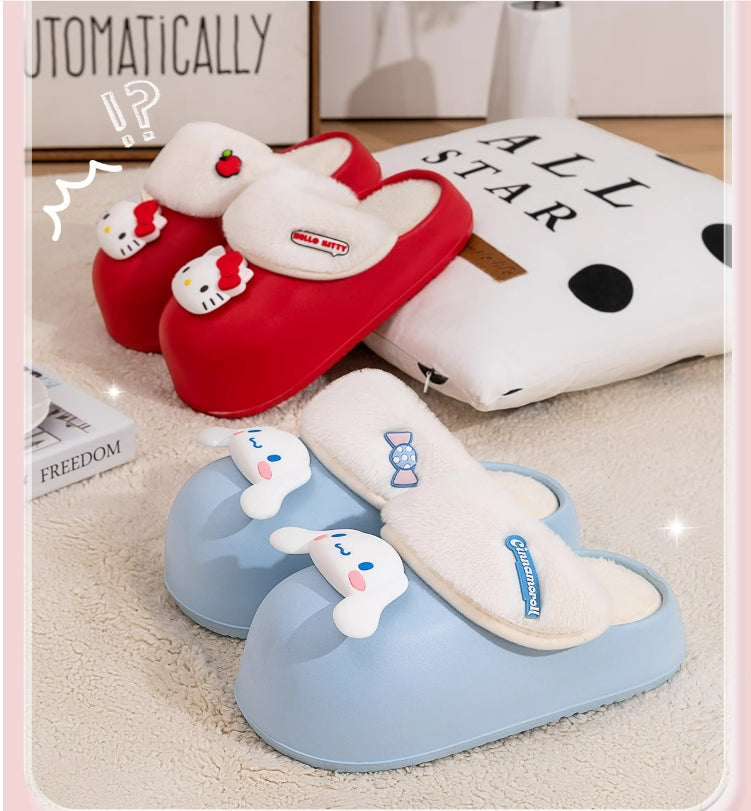 Sanrio Plush Thick-soled waterproof indoor home removable slippers for women winter
