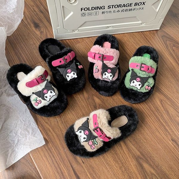 Kuromi Open-Toe Cozy Fuzzy Slippers