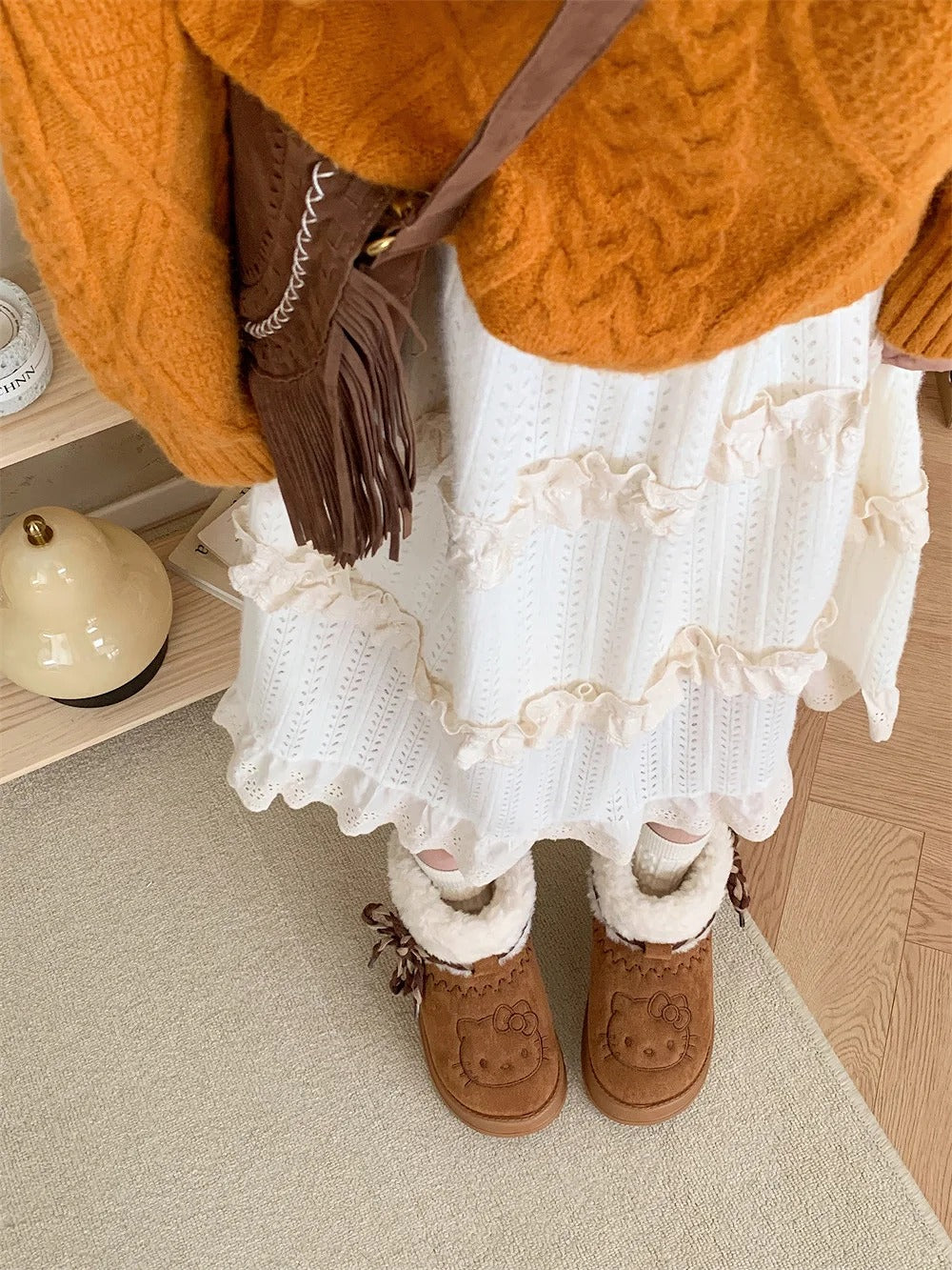 Step into ultimate winter warmth with these Hello Kitty Cozy Low-Top Furry Snow Boots! 💖
